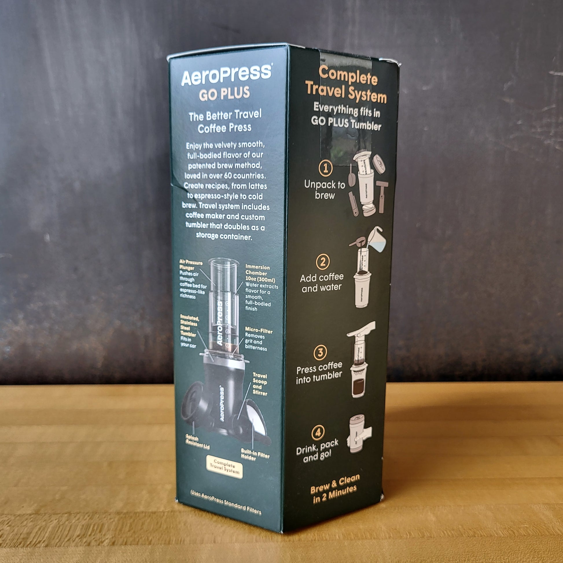 A completely self-contained coffee system, the AeroPress Go Plus lets you brew delicious American, espresso, and cold brew-style coffee anywhere you want to go. Just like the original AeroPress, the AeroPress Go Plus is engineered to brew incredibly smooth and rich coffee, plus this special travel brewer comes with its own insulated stainless steel tumbler—with built-in filter holder—that also doubles as a carrying case for the entire system. That means you can brew, sip, pack it all up, and be on your merry, caffeinated way.